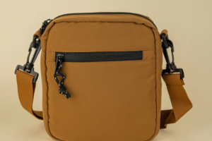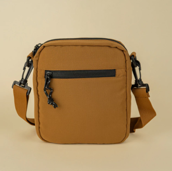 Bandolera de ripstop repelente al agua color mostaza. Tira ajustable.