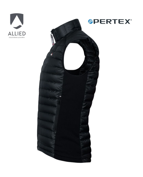 Chaleco técnico de abrigo y muy liviano, ideal para actividades de montaña o zonas urbanas de mucho frío. Calce ajustado y cómodo. Tejido PERTEX®, resistente a roces. Relleno de plumón ALLIED 800 FP, combinado con POLARTEC® Power Stretch en los laterales.