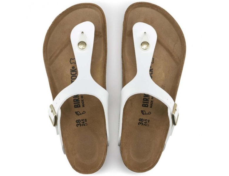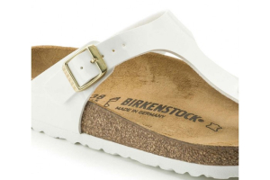 La sandalia de mujer Birkenstock Gizeh es un auténtico clásico. Este modelo, disponible en varios colores, cuenta con un puente con forma anatómica y una correa con una hebilla para un ajuste personalizado. La capellada esta hecha en charol Birko-Flor®, que es respetuoso con la piel y resistente.