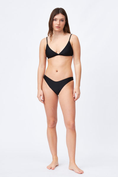 Confeccionada con lycra elastizada, la bombacha Sol Hike Black es una vedetina tiro alto en V que se coloca por encima de la cadera para crear una silueta de piernas largas, además la cobertura delgada y el talle delantero medio ofrecen el máximo potencial de bronceado.